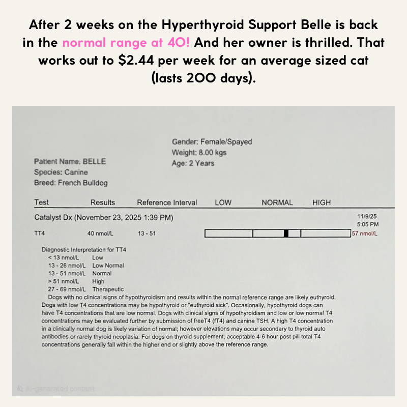 As herbal medicine is aimed at fixing the root cause of the illness instead of just negating symptoms, it is not instant. Patience is key, but if you aren't seeing results after 12 weeks, please contact us and we can reformulate the medicine to suit your pets individual needs, or you may have to increase the dosage. INDIVIDUAL RESULTS MAY VARY. INDIVIDUAL RESULTS MAY VARY